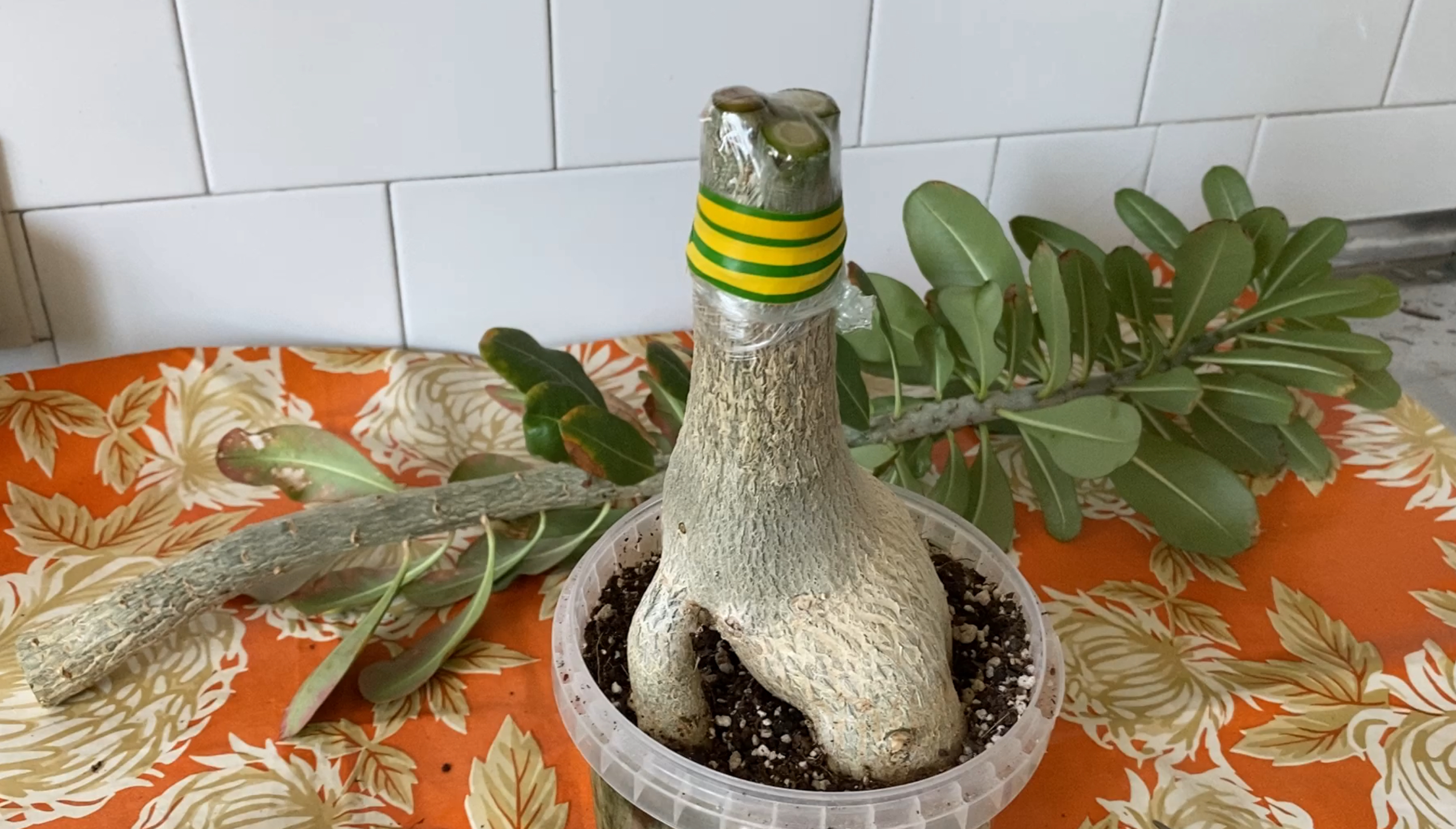 Прививка адениума. «Три пенечка на одну толстую, жирафью шею». 5 октября 2023 г.