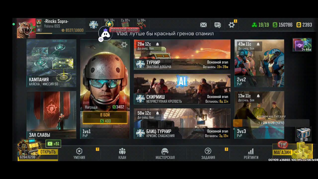 Поддержка автора по ссылке: https://www.donationalerts.com/r/rincks райффазен банк 2200 3005 1695 5281 телеграм группа для подписчиков https://t.me/art_of_war_3_rincks_sopra Продлить стрим:300 руб Смена фракции:200 руб Тренировка:300 руб 2х2: по совести Покажи кач: миллион рублей Закончить стрим:1000 руб Так же можно заказать челлендж. тоесть дать стримеру задание за определенную сумму. Например: сыграть только авиацией или вообще без неё,ну и так далее. Ссылка на игру: Долго искал настоящую стратежку на телефон, как старкрафт. Наконец нашел Art of War 3! Очень крутая игра! Вот ссылка, качай, тебе понравится: https://redirect.appmetrica.yandex.com/serve/169878688668608468?recruiter_id=1111515909