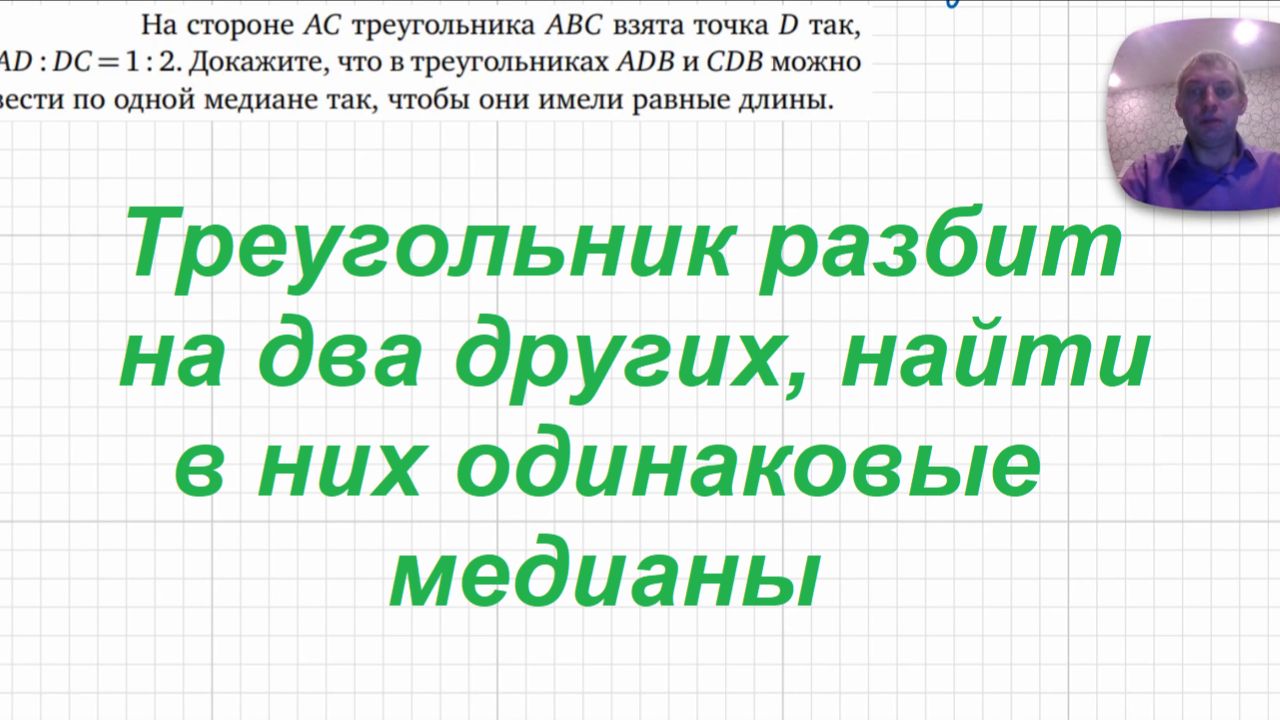 2026-04-25 Треугольник разбит на два других, найти в них равные медианы