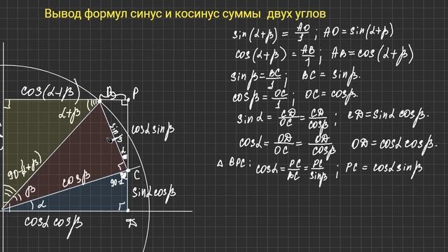 Вывод формул синус и косинус суммы
