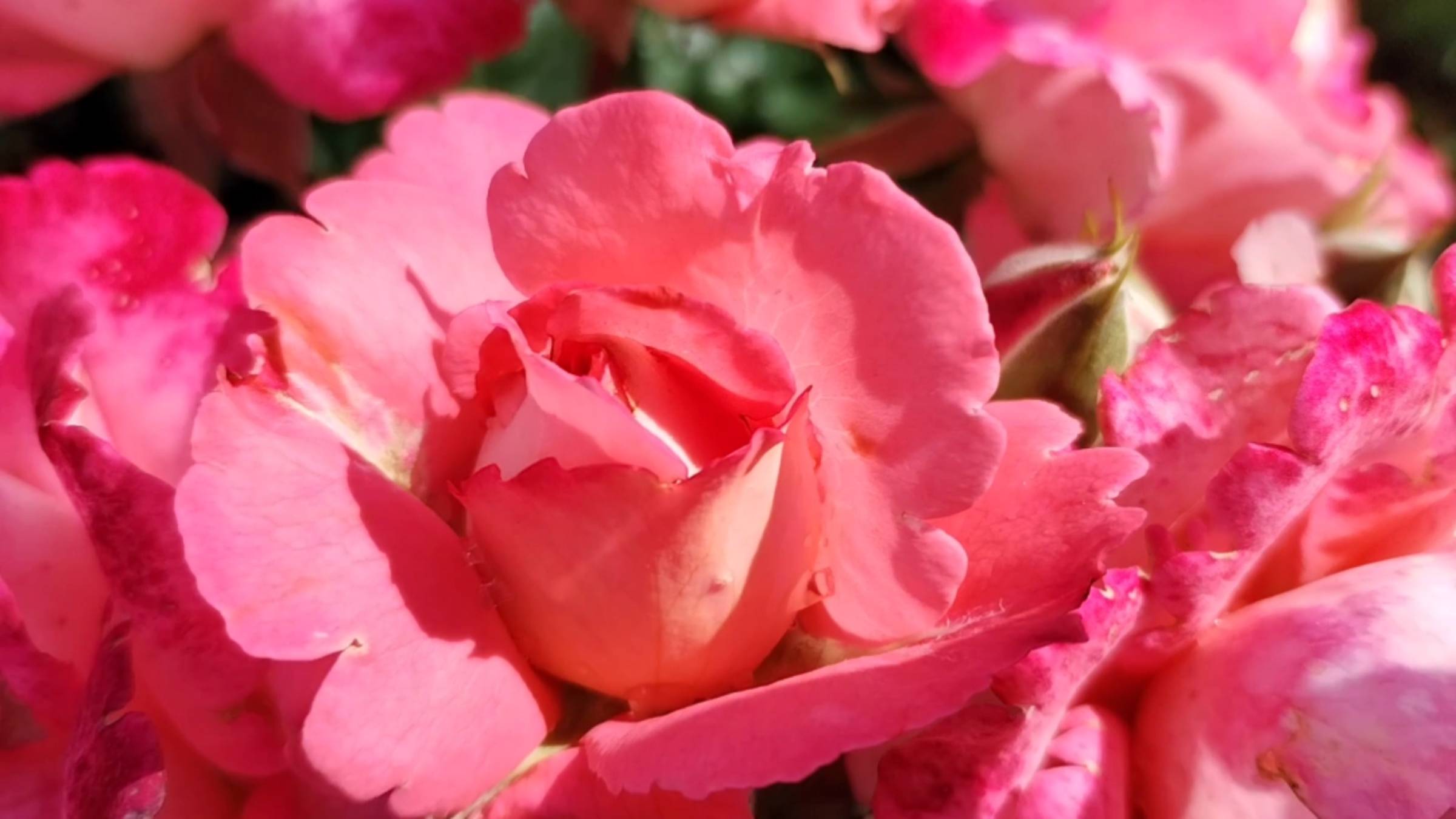 Розы желто-розовые, белые, малиновые распустились