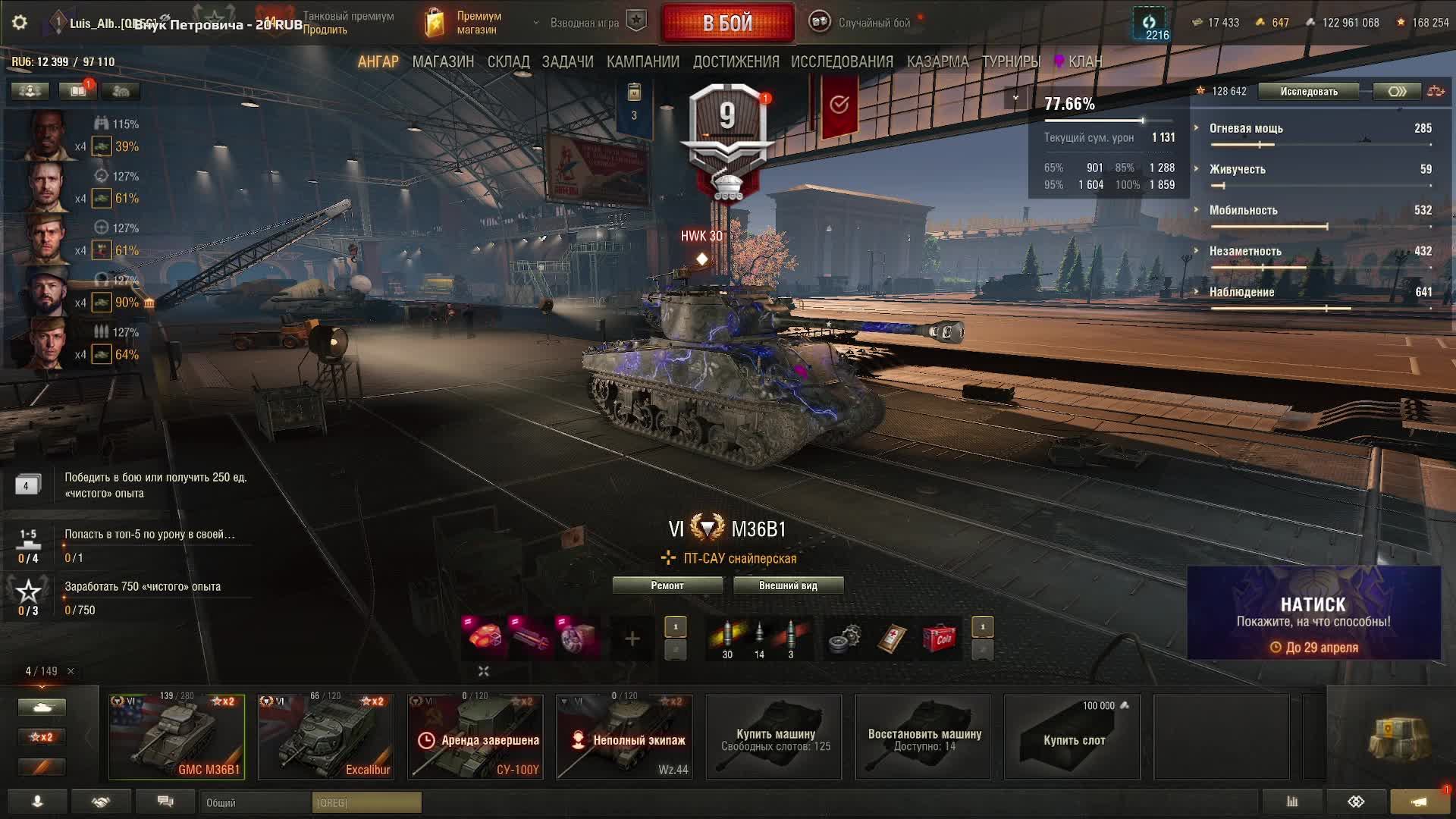 Мир Танков. Захожу в клетку со зверями. 3 отметки на M36 B1, старт 77,66%