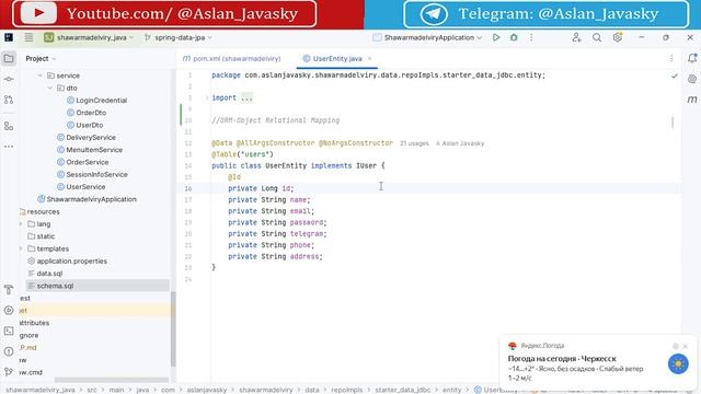 Задонатить: https://yoomoney.ru/to/4100110584940159 Курс по Spring framework на языках Java/Kotlin на примере разработки клиент-серверного приложения для заказа шаурмы) Исходный код ко всем урокам по модулю "Data JPA": https://github.com/AslanJavasky/shawarmadelivery_java/tree/spring-data-jpa https://github.com/AslanJavasky/shawarmadelivery_kotlin/tree/spring-data-jpa Задонатить преподавателю: Карта Сбер: 5469 6000 2144 3601 (Аслан) Карта Т-Банк: 2200 7001 1633 9259 (Аслан) Карта Альфа-Банк: 2200 1523 1074 7517 (Аслан) ЮMoney(ЯндексДеньги): 4100110584940159 для донатов из-за рубежа: https://www.donationalerts.com/r/aslan_javasky Спасибо :) Без VPN: https://vkvideo.ru/playlist/-229755761_3