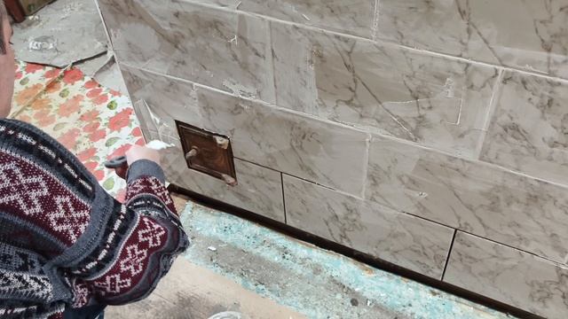 Третий день обкладываем печку плиткой.