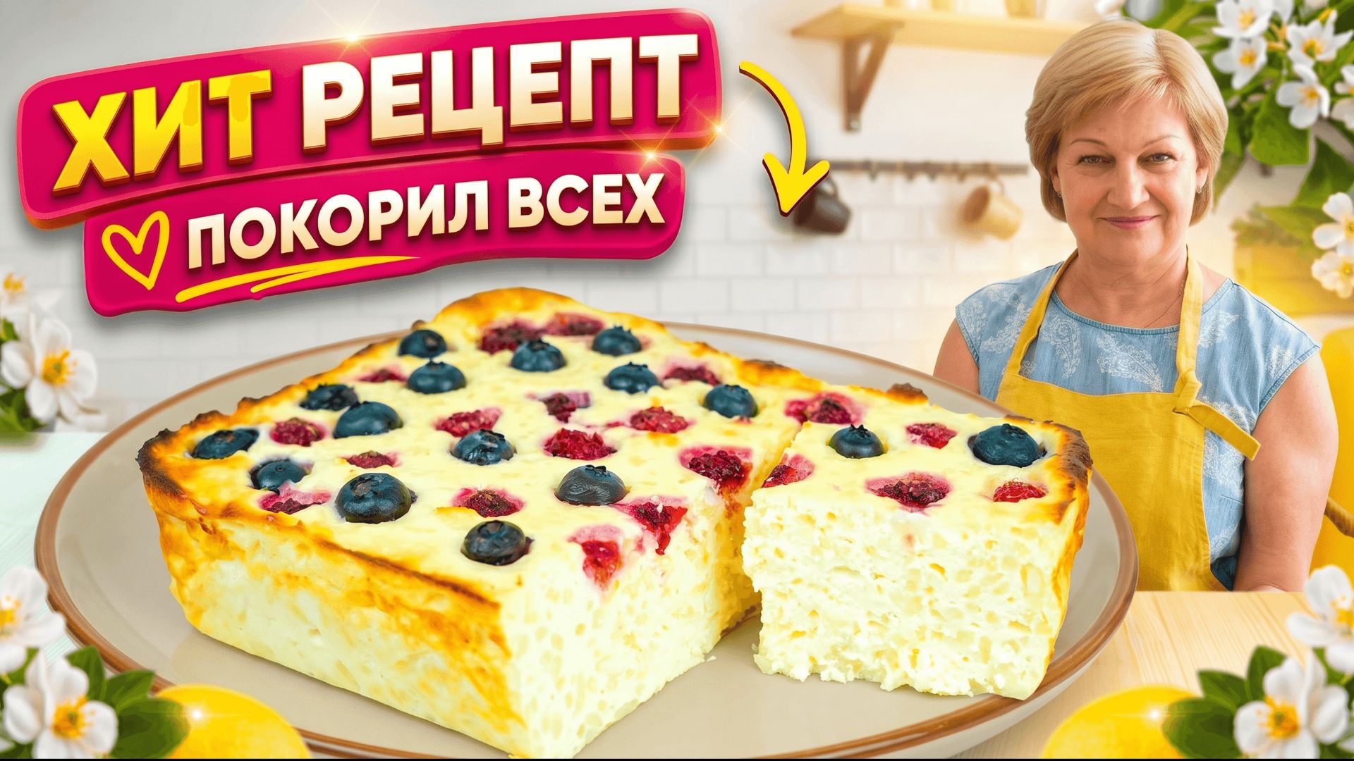 Просто смешайте и в духовку! Творожно-рисовая запеканка с ягодами