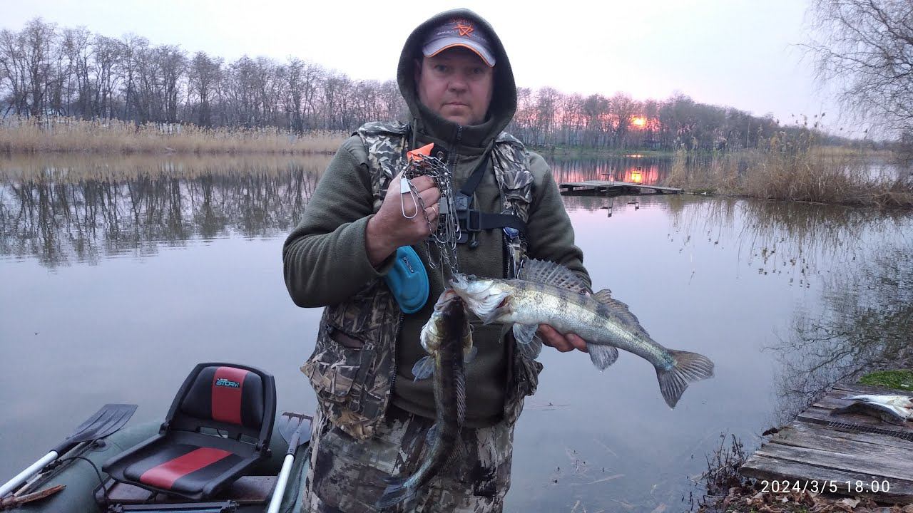 Судак проснулся,Джиг спиннинг на платнике, степная речка,два судака за 1,500 рублей.
