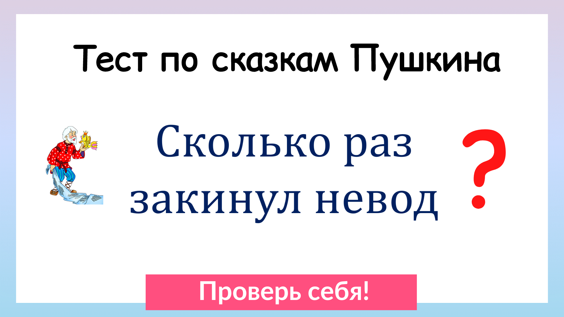 ✅ Видео по теме: Тест по сказкам А. С. Пушкина. Проверь себя! Любите ли Вы сказки Пушкина? Если да, наверняка хорошо их помните. Предлагаю Вам пройти тест из 10 вопросов по сказкам А.С. Пушкина и проверить свои знания! Пишите в комментариях какие вопросы были самыми сложными. Делитесь и с друзьями, если видео для вас полезно! ✓ Понравилось? Подпишись! #вашучитель#пушкин