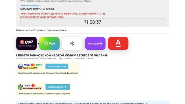 Как оплатить заказ на обучение